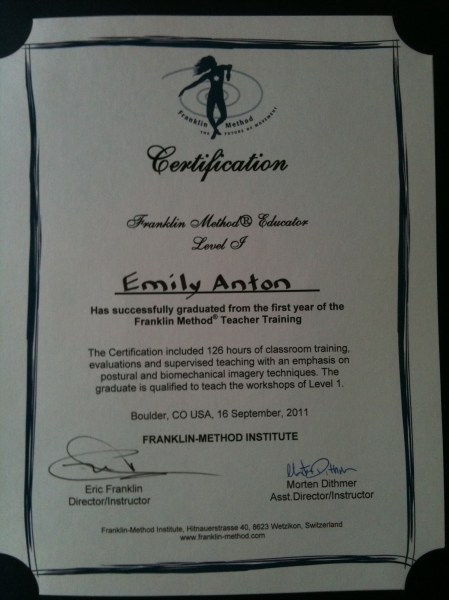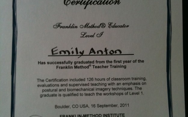 My Franklin Method year one teacher training certificate!!!